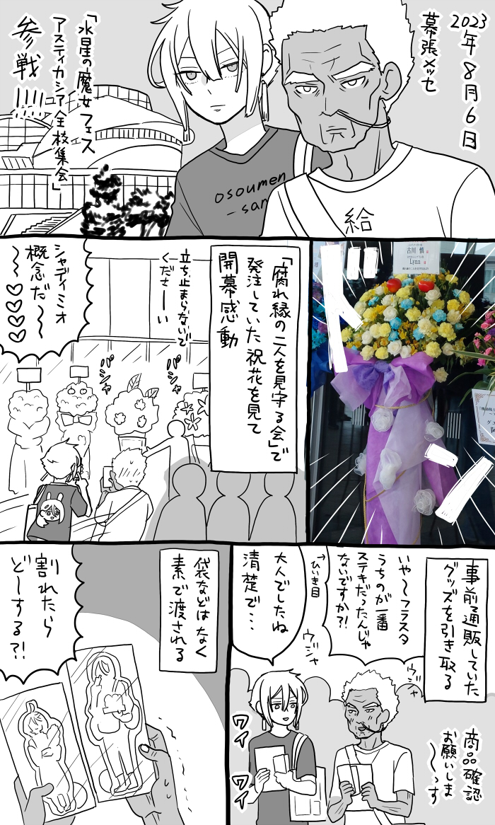60 258 水星の魔女フェスosoumenさんと一緒に行ったよっていうレポ漫画。 8枚下書きした時点で終わりが見えないので4枚描けるごとに上げていきたいと思います・・・ 23/08/11 17:50