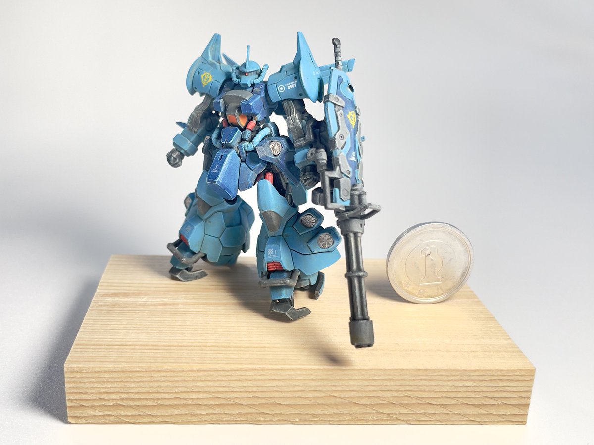 2 7 自然光で撮影 かまぼこ板と1円玉w こうしてみるとやっぱりこのサイズでこの造形は凄いなぁ ウォーハンマーに対抗して常時発売しないかな。 #ガンダムアーティファクト #ガンプラ #ガンプラの画像貼るとRTされると聞いて 23/02/18 23:05