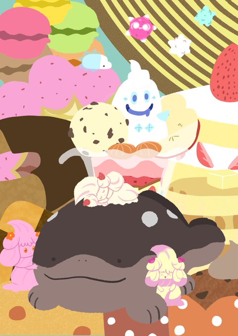 16 60 ドオー(エクレア)にマホイップちゃんを添えて #ポケモンイラスト 22/12/25 23:40