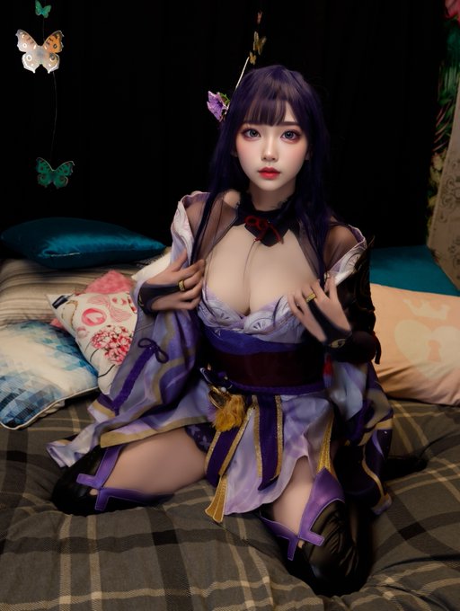 ⚠︎コスプレ⚠︎ 原神 雷電将軍 #Genshinlmpact おはようございます☀️ ベッドの上にいます RT といいねでお迎えりします 💕 どうぞよろしく😄 📷 カメラマン@BQCosplay #拡散希望 #コスプレイヤーさんと繋がりたい