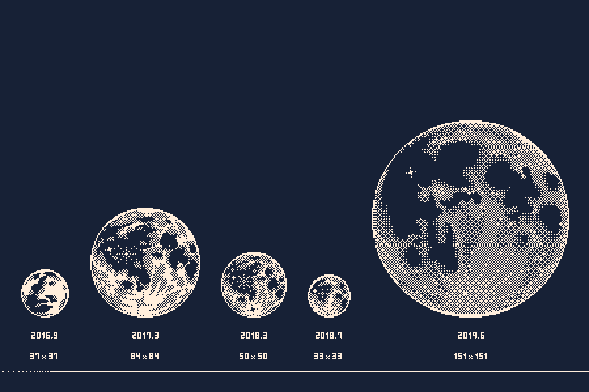 配信で8×8pxの月を描きましたが、味気なさすぎたので自主的に32×32pxの月を描きました
