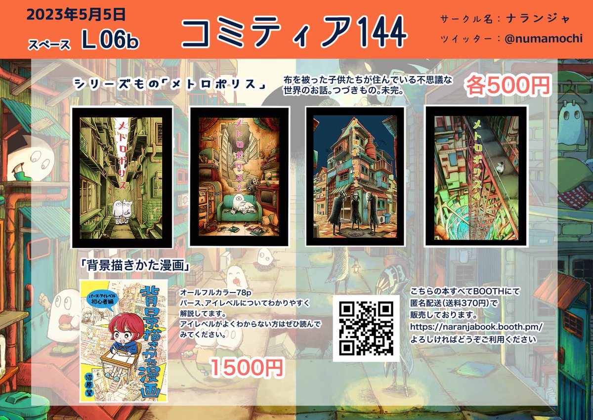 そして明日5/5開催の #コミティア144 にも参加します!スペース「L06b」です! 新しいものはペーパーとマフラー猫のポストカードを少し持っていきます! どうぞよろしくです🙌 #COMITIA144お品書き