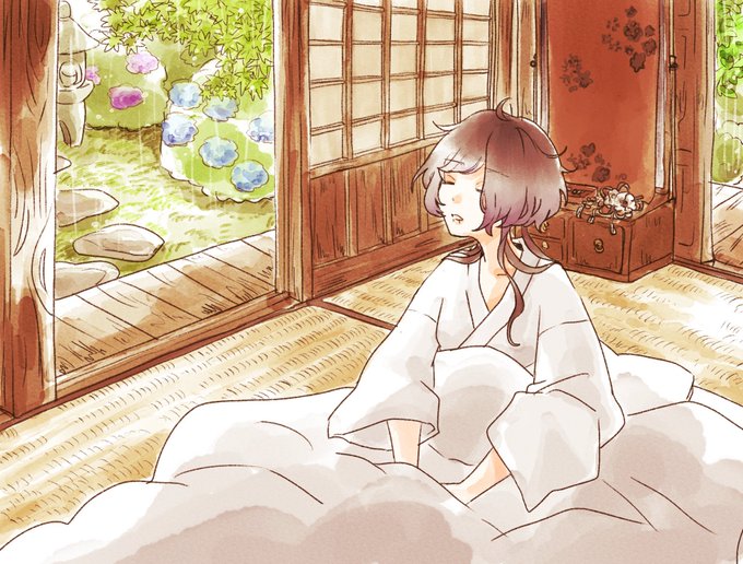 寝起き、日本家屋…いろいろ想像しながら描くのがとても楽しかったです。四季差分の冬はちょっと無理があったかもしれませんが、誰かが開けたということでひとつ…ありがとうございました! #Commission #Skeb