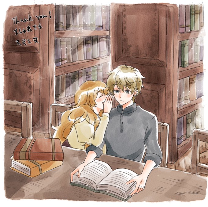 ましゅ丸様の世界に圧倒されつつたのしく描かせて頂きました。二人のあれそれがもっとみたい・・!ご提案いただいたほかのシチュも悩みましたが図書館で・・ありがとうございました! #skeb #Commission