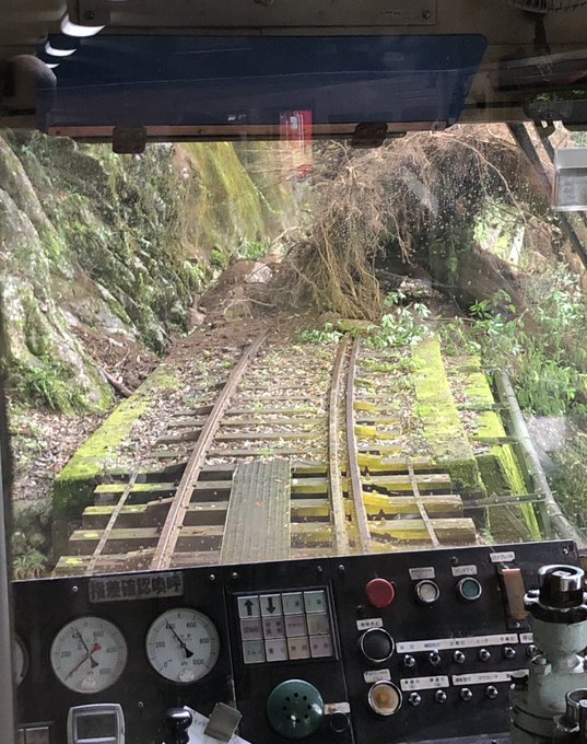 416 635 井川線井川行きの列車乗車中に沢間駅手前で倒木発生。 運行不能になり、私が乗ってた列車はそのまま千頭駅に折り返しとなりました。 今日井川線行く予定だったひとは注意してね。 #大井川鐵道 21/09/11 09:35