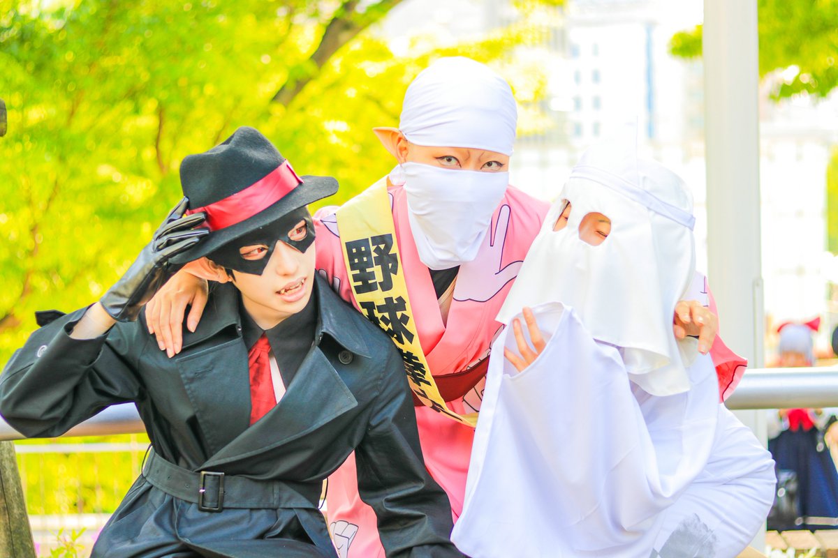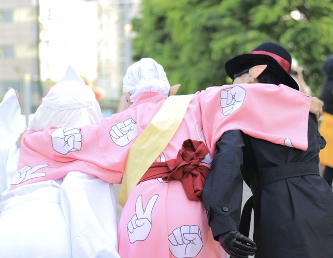 cos 吸血鬼すぐ死ぬ 👙「次また市民に迷惑をかけてみろ!この拳で鉄槌を下すぞ!」 ✊🏻「いいじゃねぇ〜か〜減るもんでもないし〜」 👻「ぷぷーまた怒られてる笑笑」 ✊🏻@bug_llll 👙@numko_o 👻@ponnatsu6