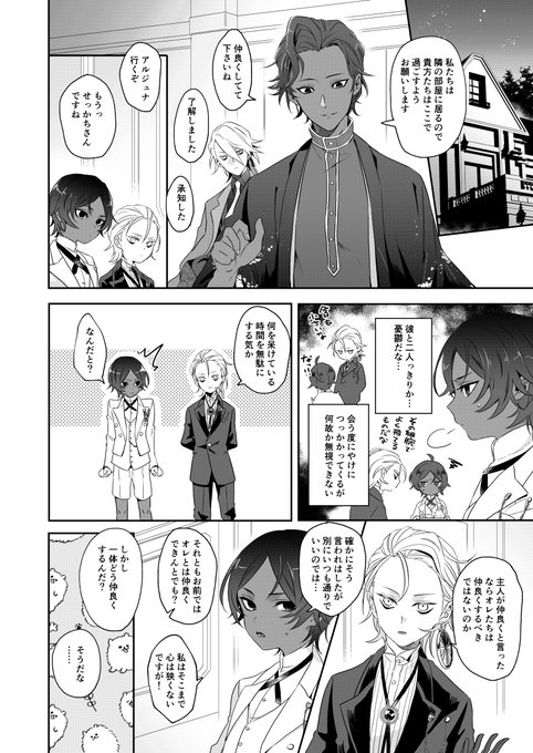32 174 掲載許可を頂いたので!ゲスト原稿のグラパ衣装しょたカルジュナ漫画です。ボスと旅装ちゃんもいます。 23/07/31 20:50