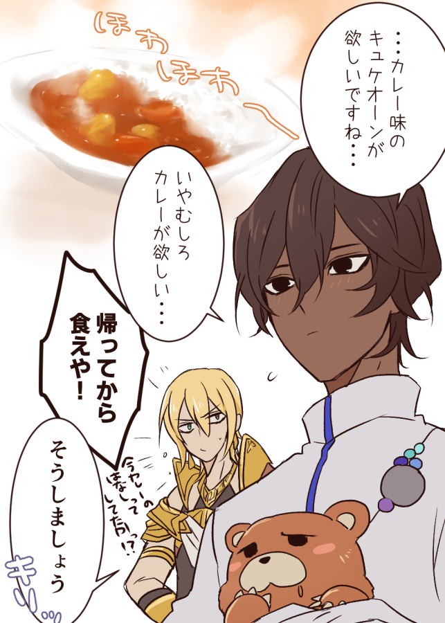 掲載許可を頂いたので!ゲスト原稿のグラパ衣装しょたカルジュナ漫画です。ボスと旅装ちゃんもいます。