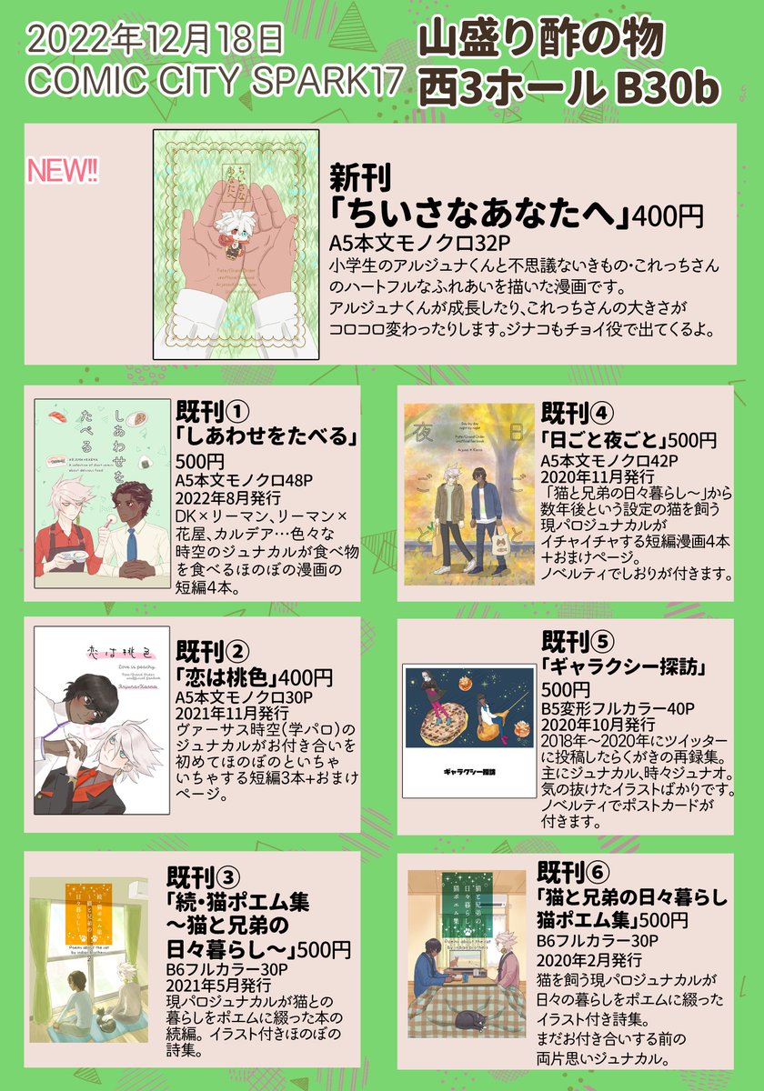 明日のお品書きです~開場から20分ほど留守にしますが(すみません…)新刊既刊ともに在庫はたくさんありますのでゆっくりお越しください~ 12/18お品書き | モフフ pixiv.net/artworks/10367…