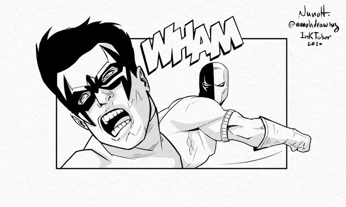 1 8 #inktober #inktober2020 #knighthood #drawing #art #sketch #illustration #sketchbook #inking #fanart #comic #comicartist #ink #hqparasempre #doodle #illustrator #dickgrayson #nightwing #deathstroke #dccomics #batmanfamily #punch #teeth 20/10/09 08:26