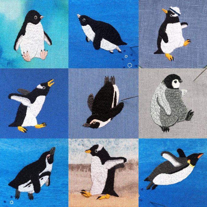 今日は #世界ペンギンの日 。近頃は連日ペンギンをチクチクしています。 様々な原因で個体数を減らしつつあり、絶滅が危惧されている種も。大自然の中でテチテチ並んで歩いたり、海の中をスイスイ飛ぶように泳いだり。彼らの愛おしい営みが、これから先も続くように願っています。 #WorldPenguinDay