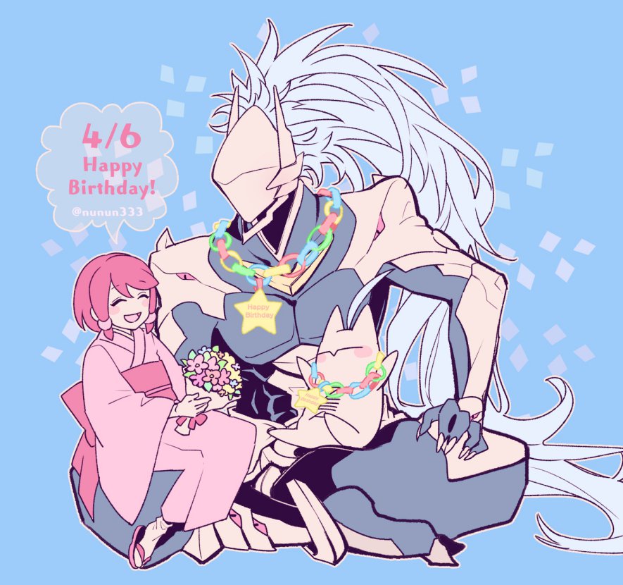 ハクメン+パクメンのお誕生日をお祝いするツバキ🎂 だいぶ遅れちゃったけど、どうしても描きたかった…!