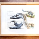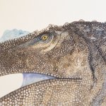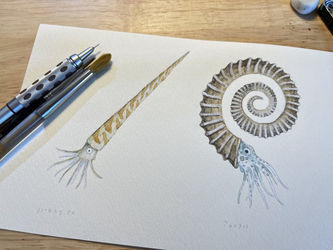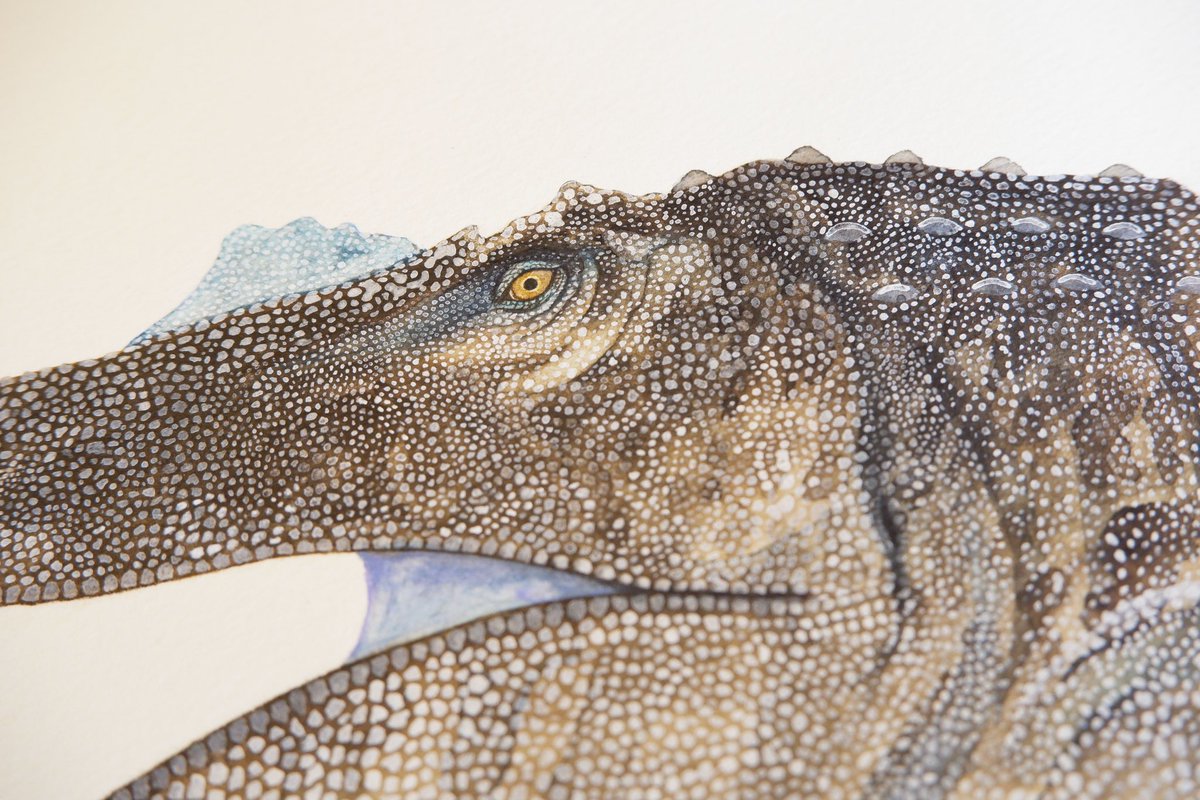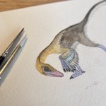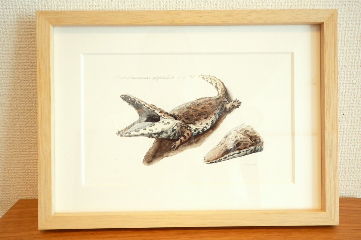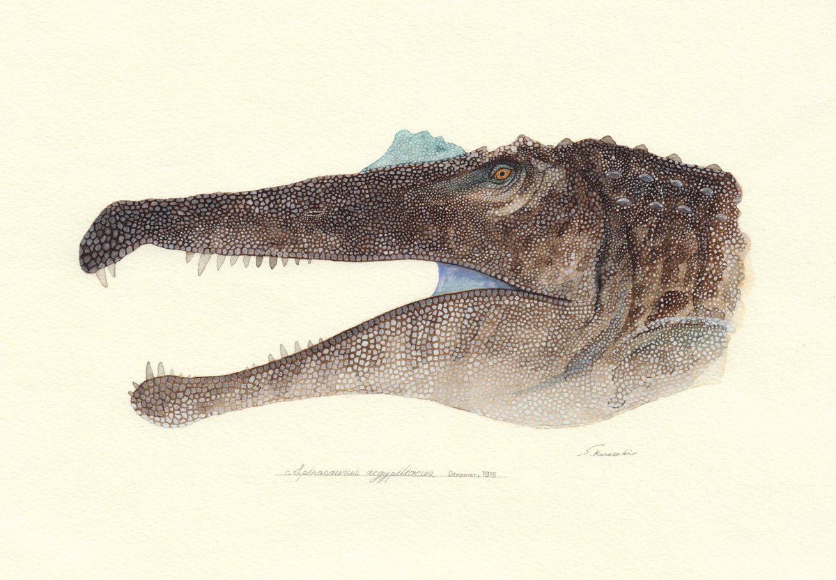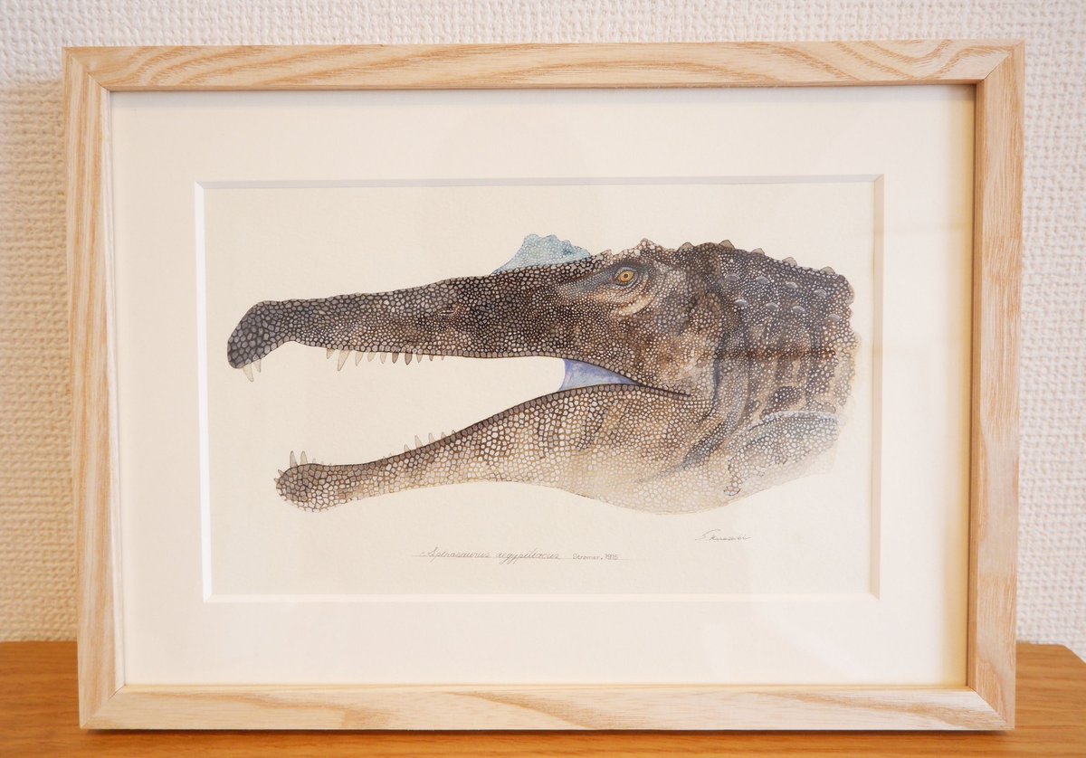 スピノサウルス描きました。全長18mという巨大さに加えて、水棲種なんですよ。ワニみたいな。水タイプの恐竜ってそうそういないんですごくワクワクします。銀座蔦屋の恐竜博開催記念フェアにて展示中〜! store.tsite.jp/ginza/event/tr…