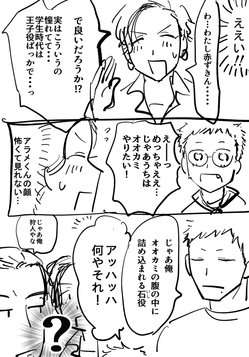 4 7 赤ずきんごっこをしないといけなくなったさよキス四人組のファンアートを描きました(?)#世界にさよならのキスをして 22/06/29 01:55