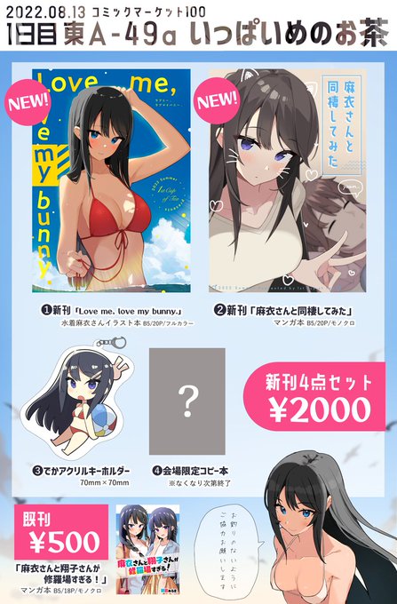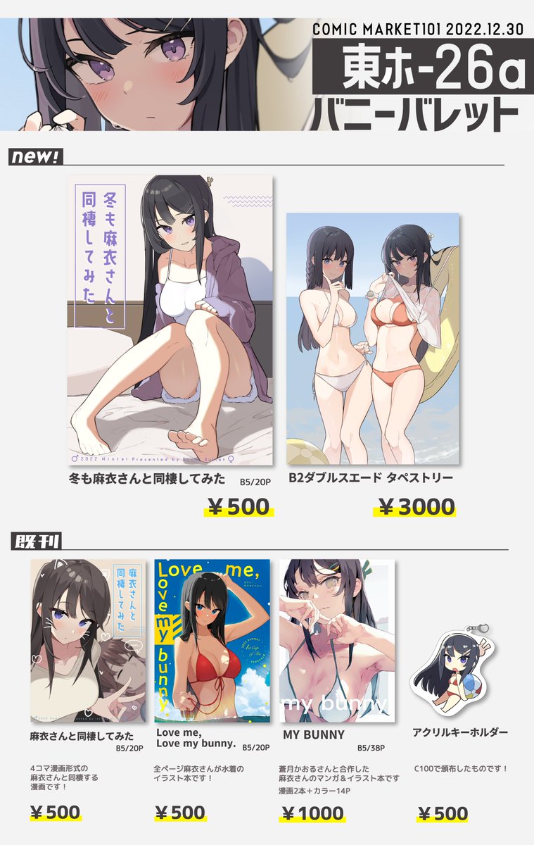 冬コミ新刊「MY BUNNY」の委託開始しました✨✨ 蒼月かおるさん(@Ka000OO)と2人で作った青ブタごった煮本で、描き下ろしカラーイラストと、漫画を2本収録しています!38Pの大ボリュームです! 会場に来られなかった方はぜひ〜! melonbooks.co.jp/detail/detail.…