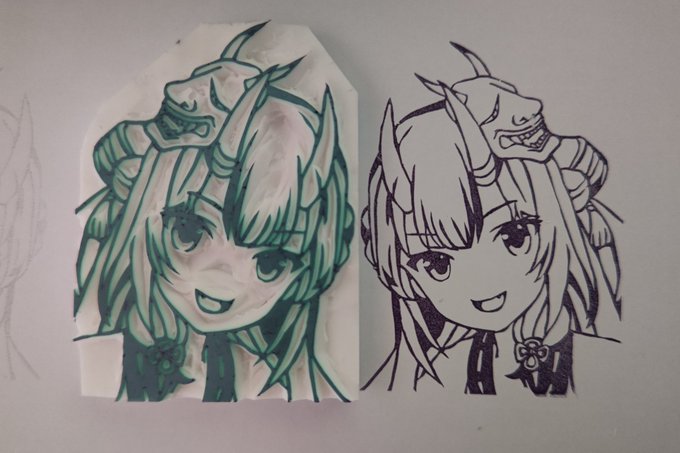1 1 今日の消しはんは戌亥とこちゃん作ってみました! 線がもっと細く彫らないとダメだったかもしれないと今になって思う(´・ω・`) #いぬいらすと 23/06/13 02:06
