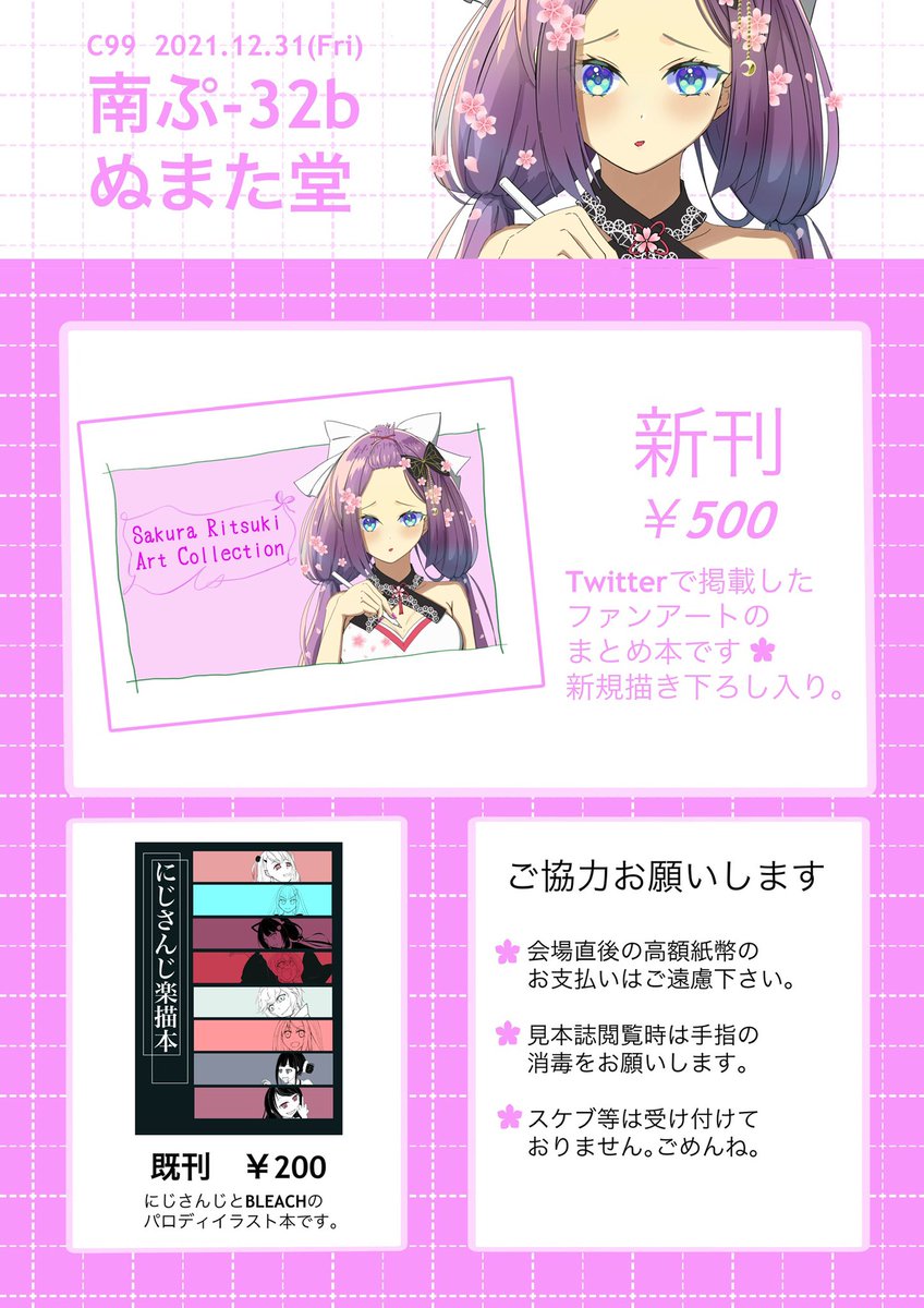 2 1 設営完了しました〜 南ぷ-32bでお待ちしております。 新たに無料配布のペーパーも追加しました〜 #C99 21/12/31 09:40