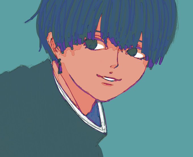 0 1 背景青だと爽やかくんになるなあ #イラスト #絵かきさんと繋がりたい #私の絵柄が好みって人にフォローされたい 23/04/02 14:16