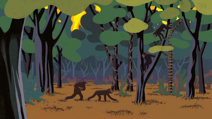 Pelado 🤚🏾 e suado 💦: sobre o Homo erectus e como humanos se tornaram predadores 👇 Leia a história 1/5 #quadrinhos #prehistoria #ArtistOnTwitter #ciencia #paleoart