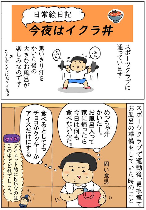 こんばんは、ブログを更新しました。今回は韓国滞在日記をお休みして日常小ネタです。「今夜はイクラ丼」続きは下記URLブログでどうぞ!:nyangway.com/20221012_ikura/ #漫画ブログ #イラストブログ #イラスト #スポーツクラブ #イクラ丼 #お風呂