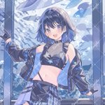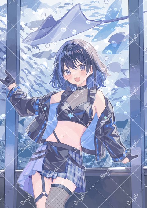 2 23 海野えいさん( #ei_umino )の1周年記念ブロマイド・ポストカードを担当させていただきました!エイチャンのかっこかわいい新衣装を描かせていただき光栄です🐟 1周年おめでとうございます~!#海野絵い 23/08/12 18:56