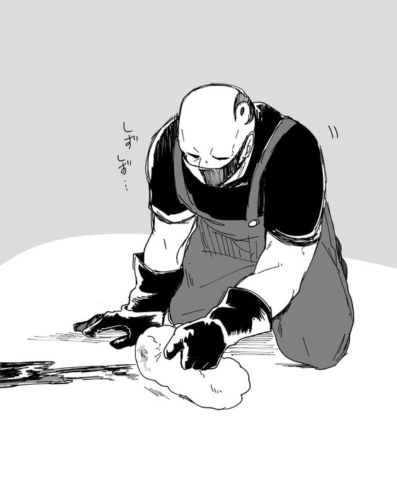 0 40 クマさんみたいな大男がこまごまとした作業や動作をしているのになんかかわいさを感じる…( ˘ω˘ ) (本編にまともな清掃シーンは出てこないので落書きで🫠) #コルクラボマンガ専科 22/07/28 17:47