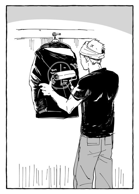 クマさんみたいな大男がこまごまとした作業や動作をしているのになんかかわいさを感じる…( ˘ω˘ ) (本編にまともな清掃シーンは出てこないので落書きで🫠) #コルクラボマンガ専科