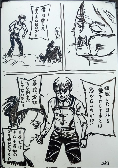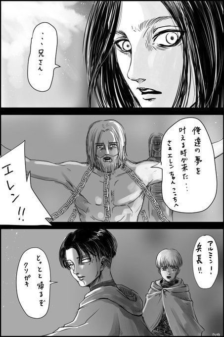 41 210 進撃がしんどかったので、すげーうるさい旧リヴァイ班が巨人化するリヴァエレ(?)と、唯一カッコよく描けたハンジさんと兵長 23/03/06 13:12