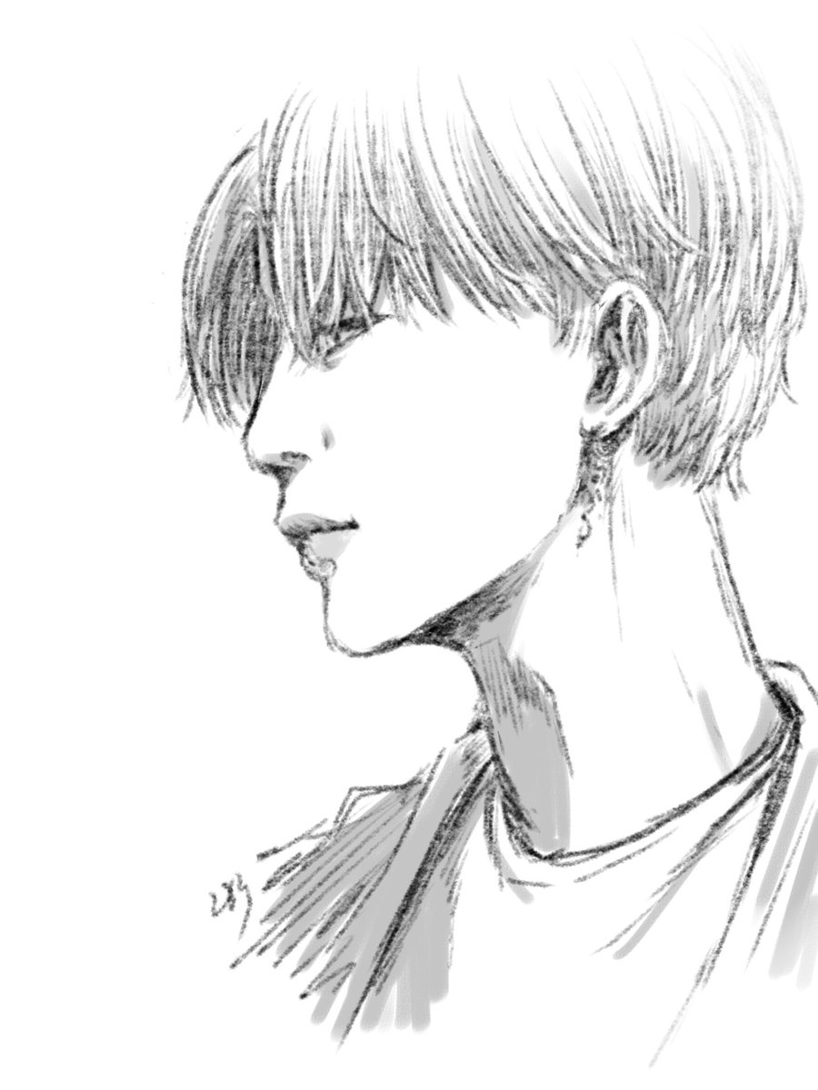 ジミンちゃんの横顔ってお絵描き欲掻き立てられる〜💜 でもリハビリしないと手が動かない🤣 #btsfanart