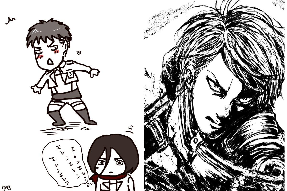 進撃がしんどかったので、すげーうるさい旧リヴァイ班が巨人化するリヴァエレ(?)と、唯一カッコよく描けたハンジさんと兵長