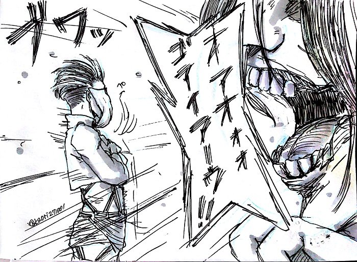 87 511 三億年ぶりに自分の支部の落書き見返してたら気に入ってたチャレンジ出てきた #エレンちゃんの死に急ぎチャレンジ 22/09/04 19:59