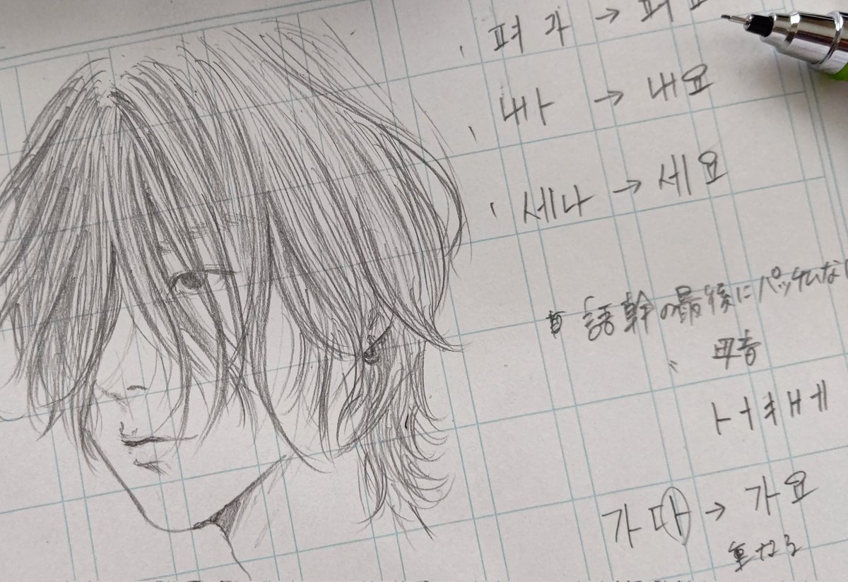 #2025年韓国語ペラペラ大作戦 語幹の最後にパッチムが無いヘヨ体について勉強しながら推しを落書きしまし…←勉強しろ