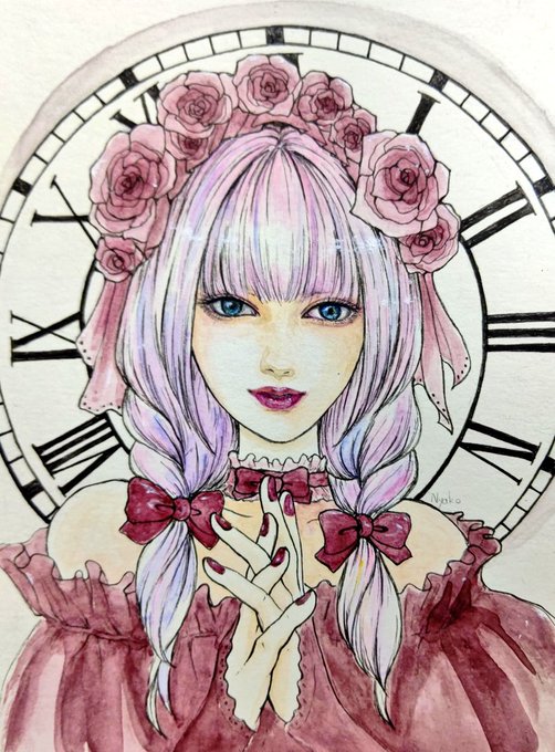 「ありがとう」 ピンクと水色のウイッグみたら描きたくなって、久しぶりに女子。リボンやレースは描いてて楽しい、リアルでは無縁なのでw小豆色の服もw #イラスト #アナログイラスト #イラスト好きさんと繋がりたい #透明水彩 #一次創作 #illustration