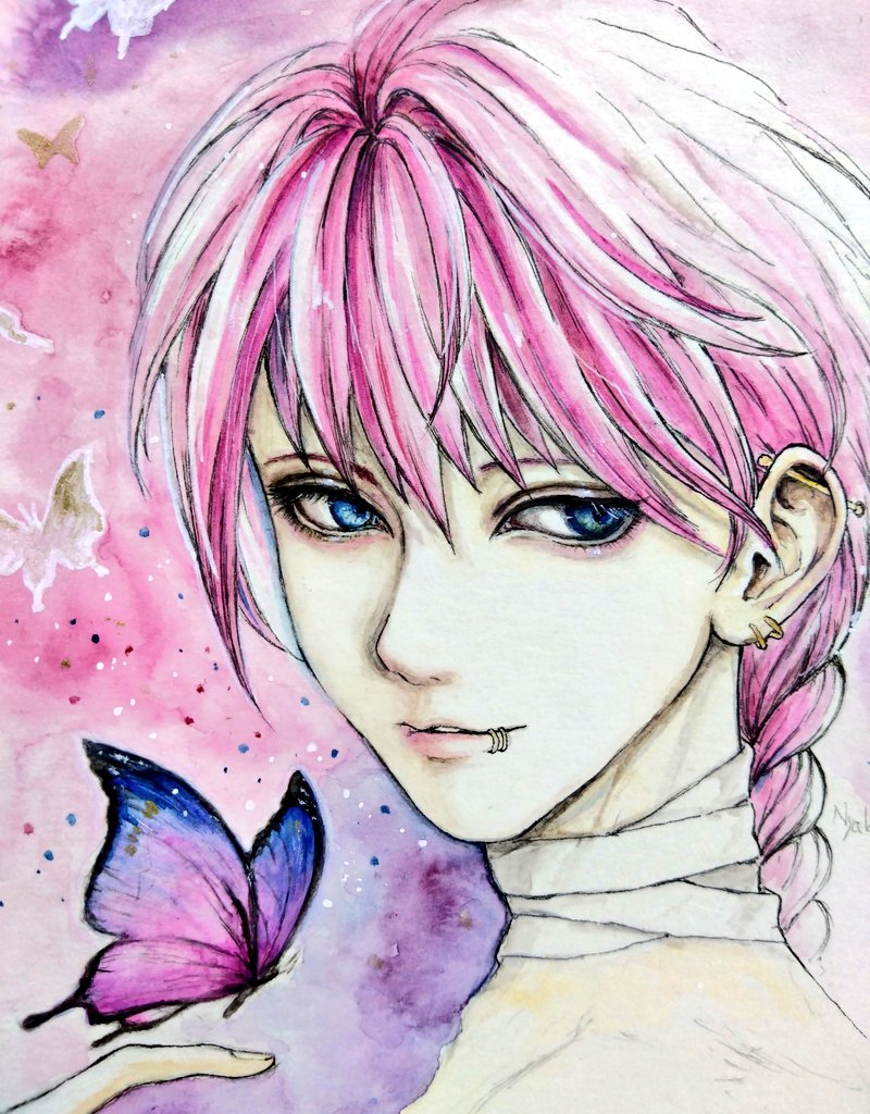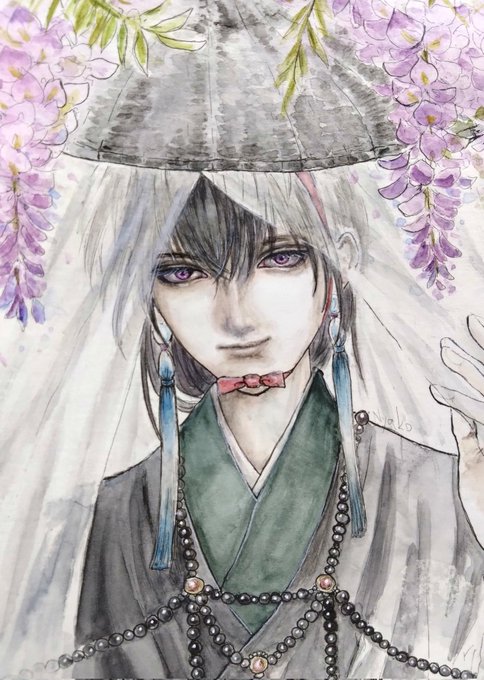 『藤男子』 色の配置考えるのってホンマ難しい…直感でひらめかないからね吾((-_-;)…GW中は #絵描きさんフォロバ100 #イラスト #アナログ絵 #透明水彩 #創作男子 #ゴールデンウィークSNS展覧会2023 #illustration #絵柄が好みって人にフォローされたい