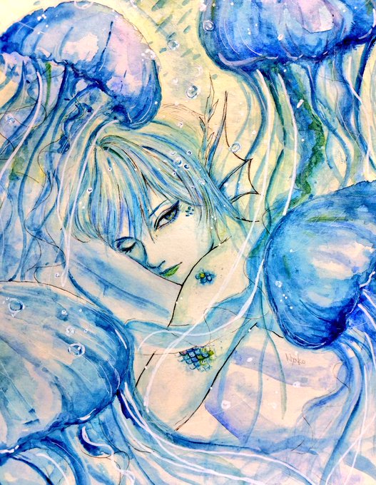 「海月日和 kurage-biyori」 クラゲの枕が欲しいなあ…って、たんにクラゲが描きたかっただけ #イラスト #アナログ絵 #透明水彩 #創作男子 #絵描きさんと繫がりたい #illustlation