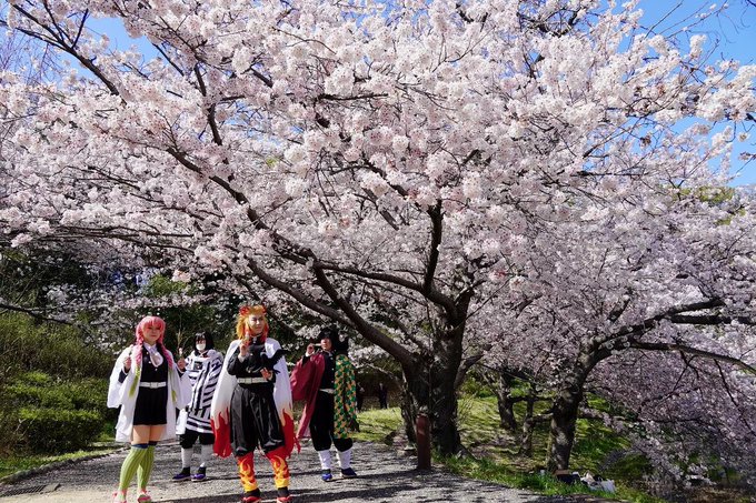 ⚠️コスプレ注意 桜ロケしてきました☺️🌸 🍡あさぷ 🔥りゆみん 🐍庵迩(@hn355) 🌊朝束僚 📷さちげさん←🙏感謝