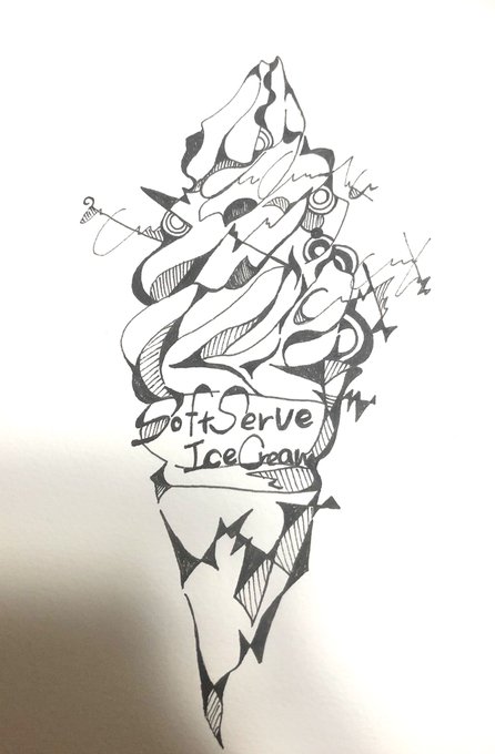 「ソフトクリームの造形の美しさ」 #イラスト #イラスト好きな人と繋がりたい #白黒 #モノクロイラスト #ペン画 #ソフトクリーム #絵柄が好みっていう人にフォローされたい #春の創作クラスターフォロー祭り