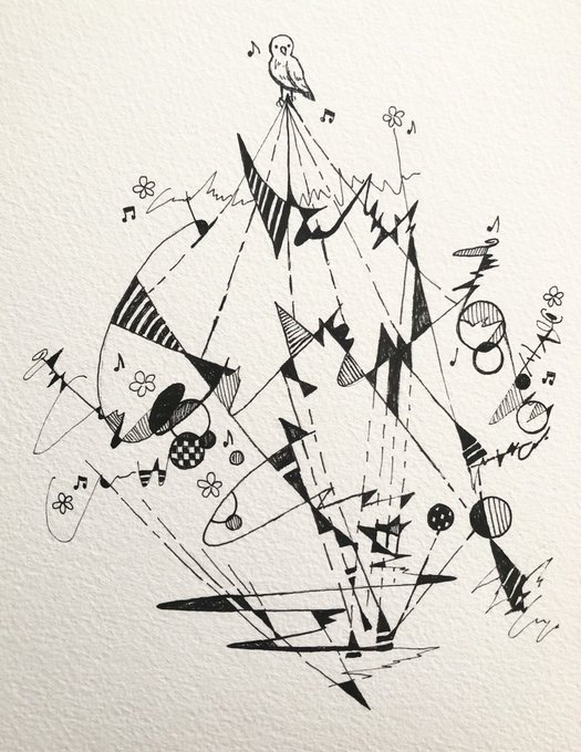 #3月になったのでフォロワーさんに自己紹介しようぜ 最近フォロワさん増えてきたので改めて!白黒のペン画で「線と幾何学模様と音のイラスト」をメインテーマに色々と描いてます。他に水彩で動物とかも描いてます。 よろしくお願いします!