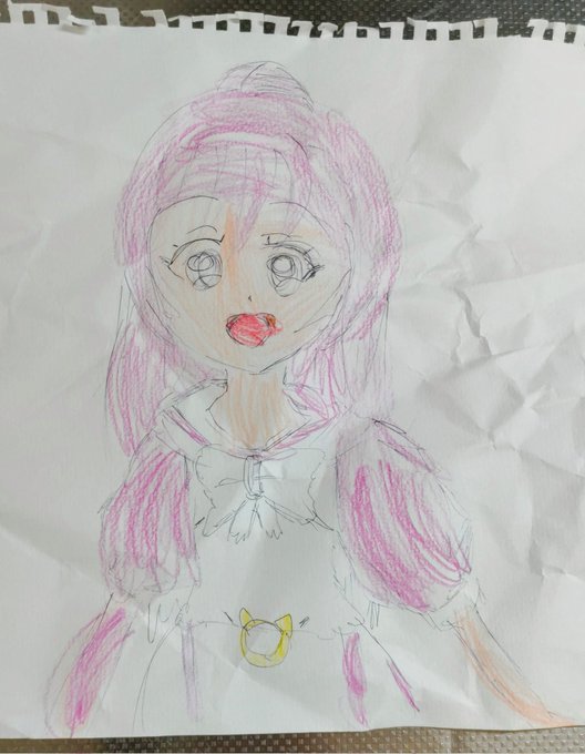 レトロな感じにましろちゃん描いてみた #らくがき #イラスト #おえかき #キャラクター #プリキュア #レトロ #色鉛筆 #描いてみた