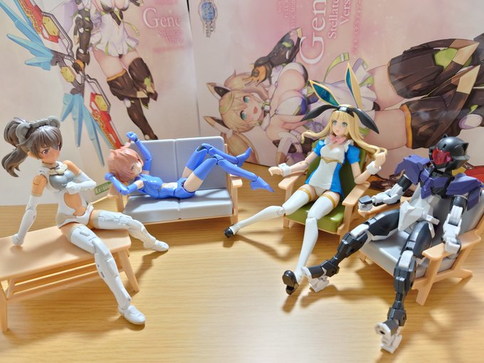 武器も完成したので、ジェネちゃんと一緒に遊んでみました。 武器のクリアパーツ、すごくきれいですね。 こうやって撮っていると小物系がほしくなります。 #ジェネ #プラモデル好きと繋がりたい #メガミデバイス
