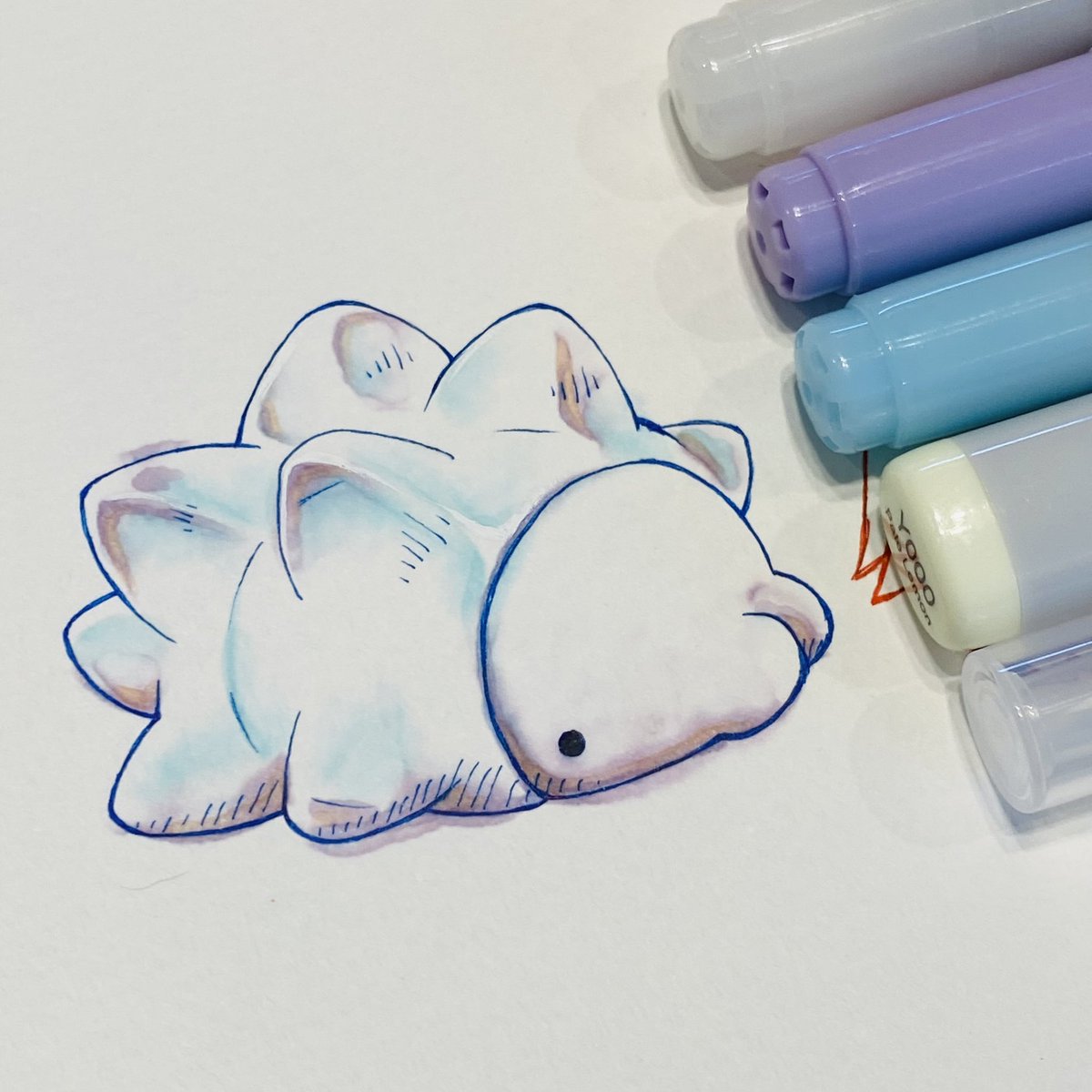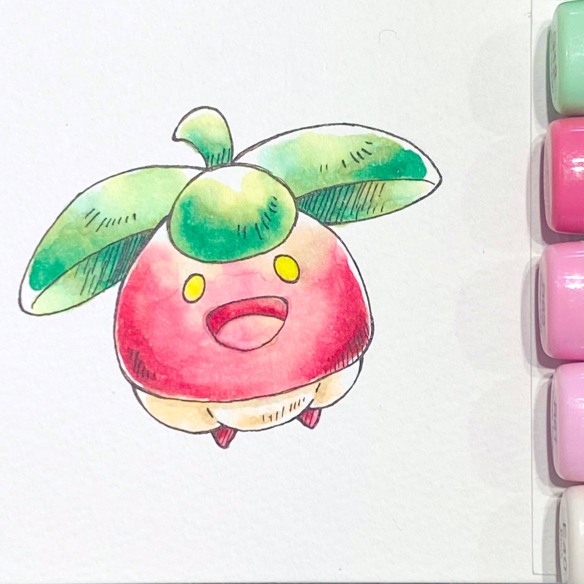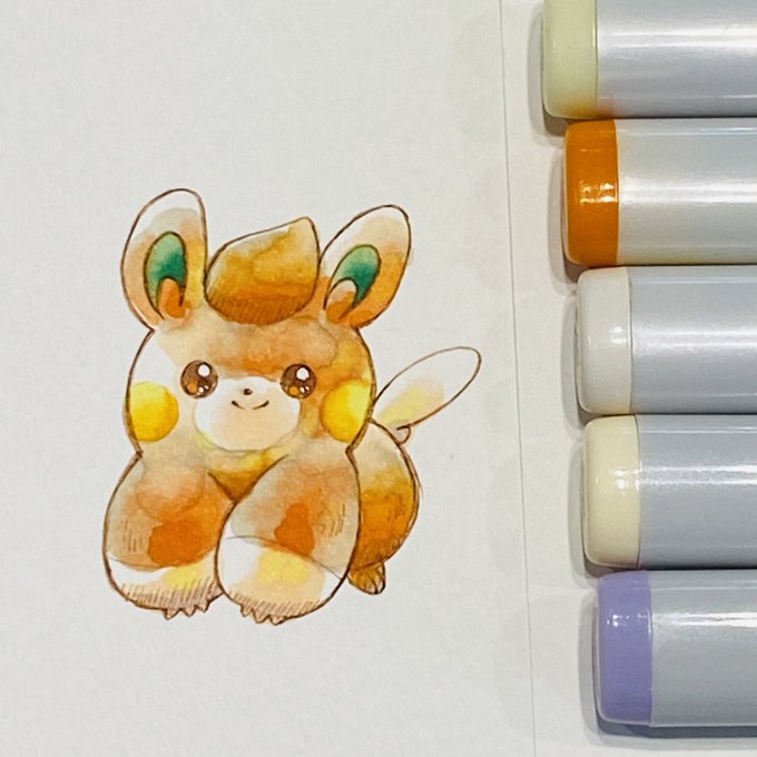 3日目 コピックで水彩風の練習 パモちゃん!いい感じに出来たきがする! ただノリと勢いだけで塗ってたから、どうやって良い感じになったかがわからない😭 #100日チャレンジ #コピックイラスト