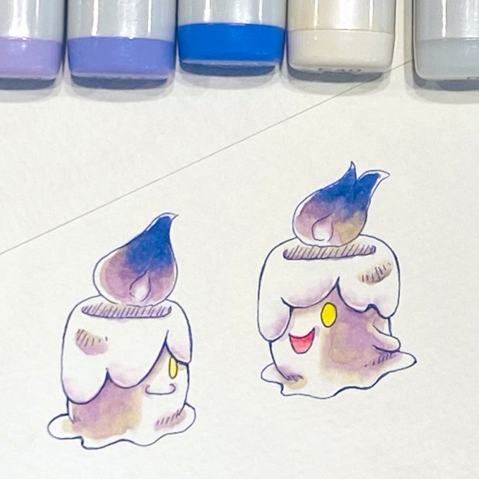 9日目 コピックで水彩風練習 シャンデラさんは難しかったです。 かなり時間がかかってしまいましたが、ちょっとは怖く塗れたかな? モシモシちゃんと一緒に。 #100日チャレンジ #コピックイラスト