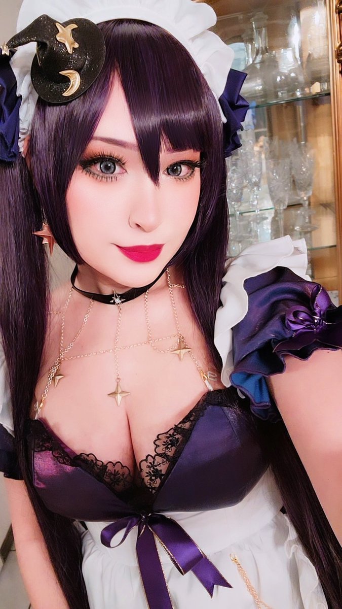 Mona Megistus Cosplay From videogame Genshin Impact, Maid version 💖 ☆Costume and wig by: @uwowocosplay Discount code: "NAMITSUKI" 💗 ☆Contact lens: @WhereColour 💗 #GenshinImpact #cosplay #コスプレ