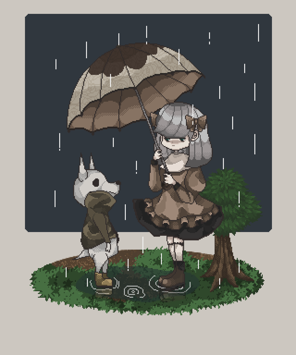 雨と少女となにか #pixelart #ドット絵