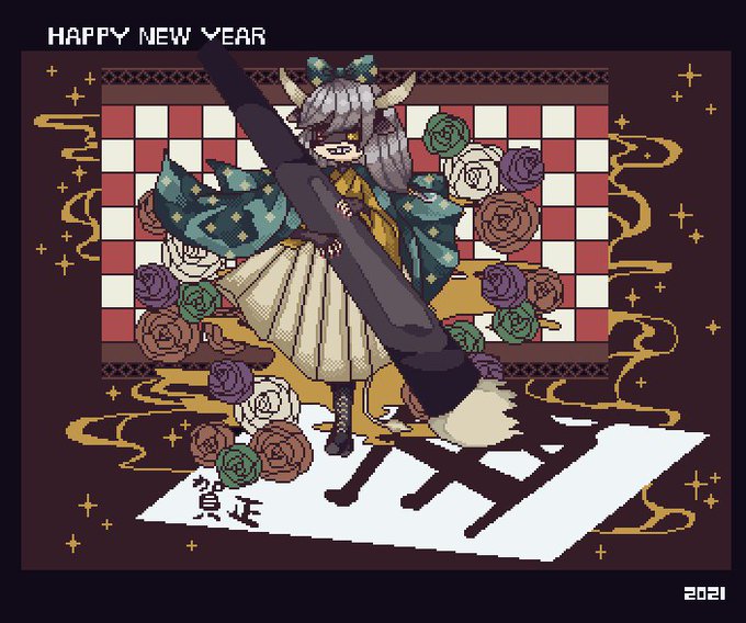 2 11 ✨✨🎍🐮🎍✨✨ 今年もよろしくお願いします! #pixelart #ドット絵 21/01/01 19:24