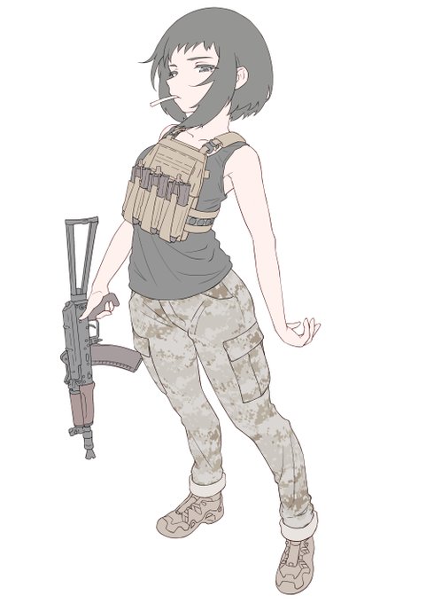 依頼者様のオリキャラ+AKS-74Uを描きました。 Skebリクエスト頂きありがとうございます! skeb.jp/@nyandgate_mil…
