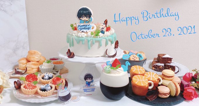 伊月くんお誕生日おめでとう〜〜!!!✨✨✨🎂👏🎉 今日は何でもある日のお誕生日パーティーだよ!! 私から黒バスコラボの不思議の国風ギミックケーキとお菓子でお祝いです!☺💕 たくさん食べてみんなにお祝いされてね!!!☺☺ #伊月俊生誕祭2021