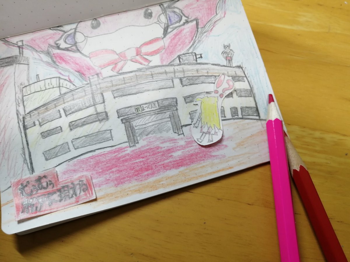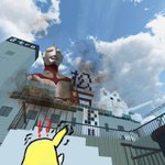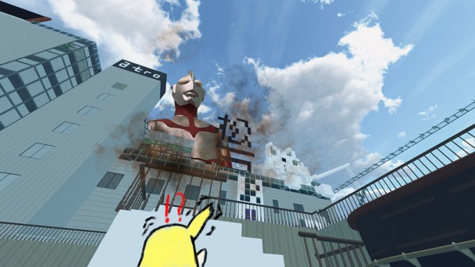 松戸駅に現れたウルトラマンに驚くとじょりん。@Tojou_Linca #戸定梨香 #とじょりんアート #ウルトラマン