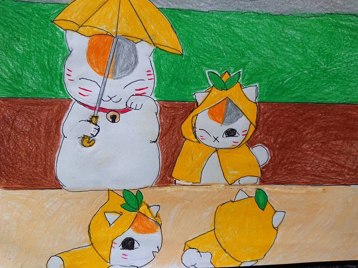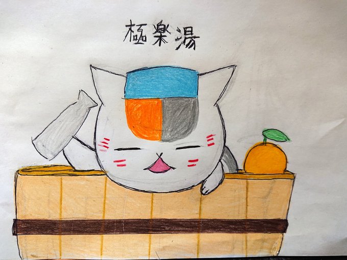 お早うございます。\(^o^)/今日は、にゃんこ先生が柚子風呂に入ります。 #絵描きさんと繋がりたい #イラスト好きな人と繋がりたい #夏目友人帳