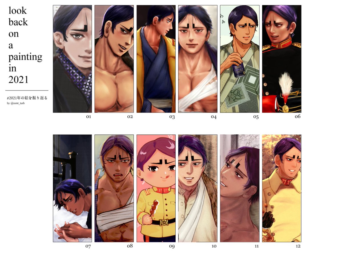 #2021年の絵を振り返る 去年しそびれたので。さいとう先生の上達法挑戦した下半期から絵柄がかなり変わった1年だった。描く楽しさやスピードなんかも増したし凄い感謝です!今年はもっといろんな推しを描けるようになりたい。(テンプレートお借りしました)
